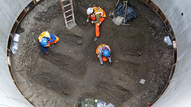 Revelan el misterio de los 25 esqueletos desenterrados bajo una plaza de Londres30 Mar 14 - 23:20 * Los esqueletos que desenterraron en Londres en 2013 durante los trabajos en una línea ferroviaria subterránea son víctimas de la gran epidemia de peste del siglo XIV, según indican las pruebas forenses.